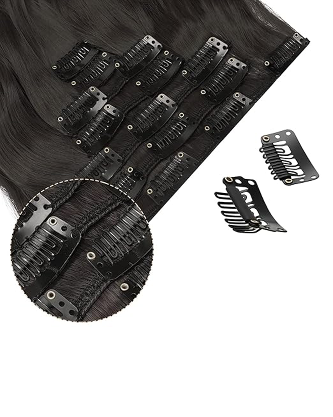 Whether you're hitting the party or just chilling at home, these clip in hair extensions for thick hair are heat-resistant, so you can style 'em however you want without worrying about damage. And the natural-looking shades? They blend seamlessly with your own hair, so no one's gonna know you're rocking extensions. So what are you waiting for, sis? Upgrade your hair game and grab these Clip in Hair Extensions for thick hair. Your hair locks are about to be the talk of the town.